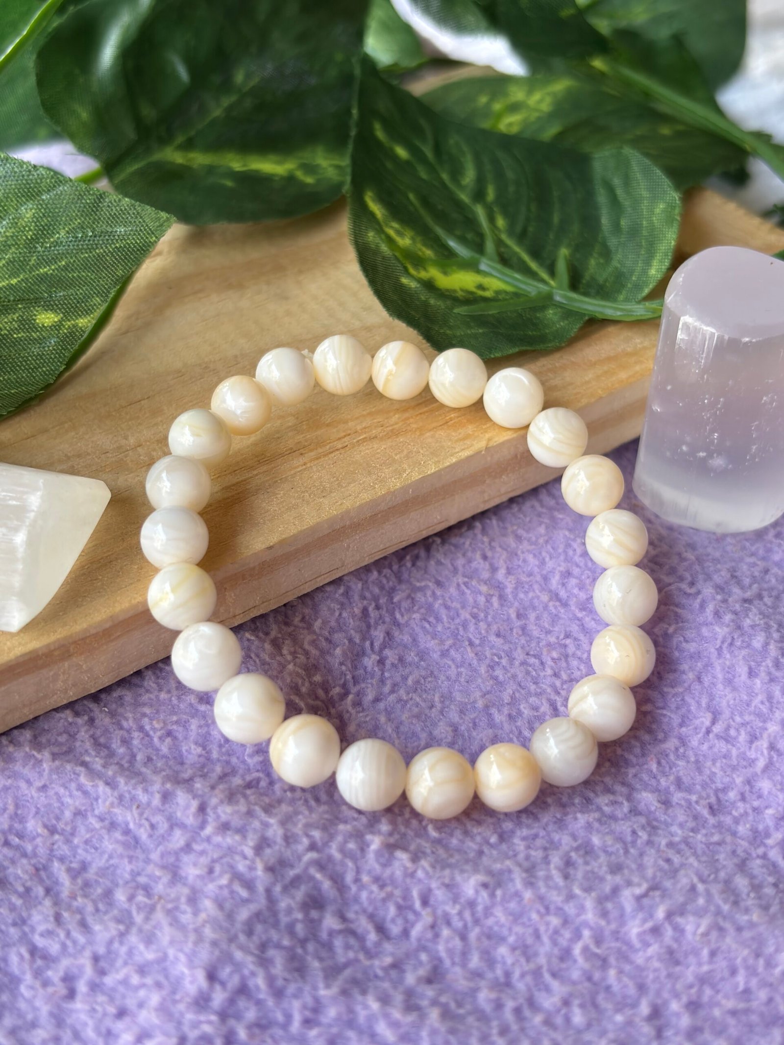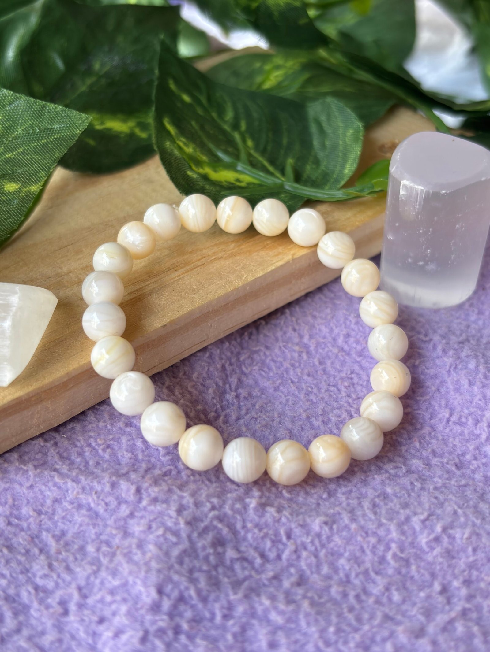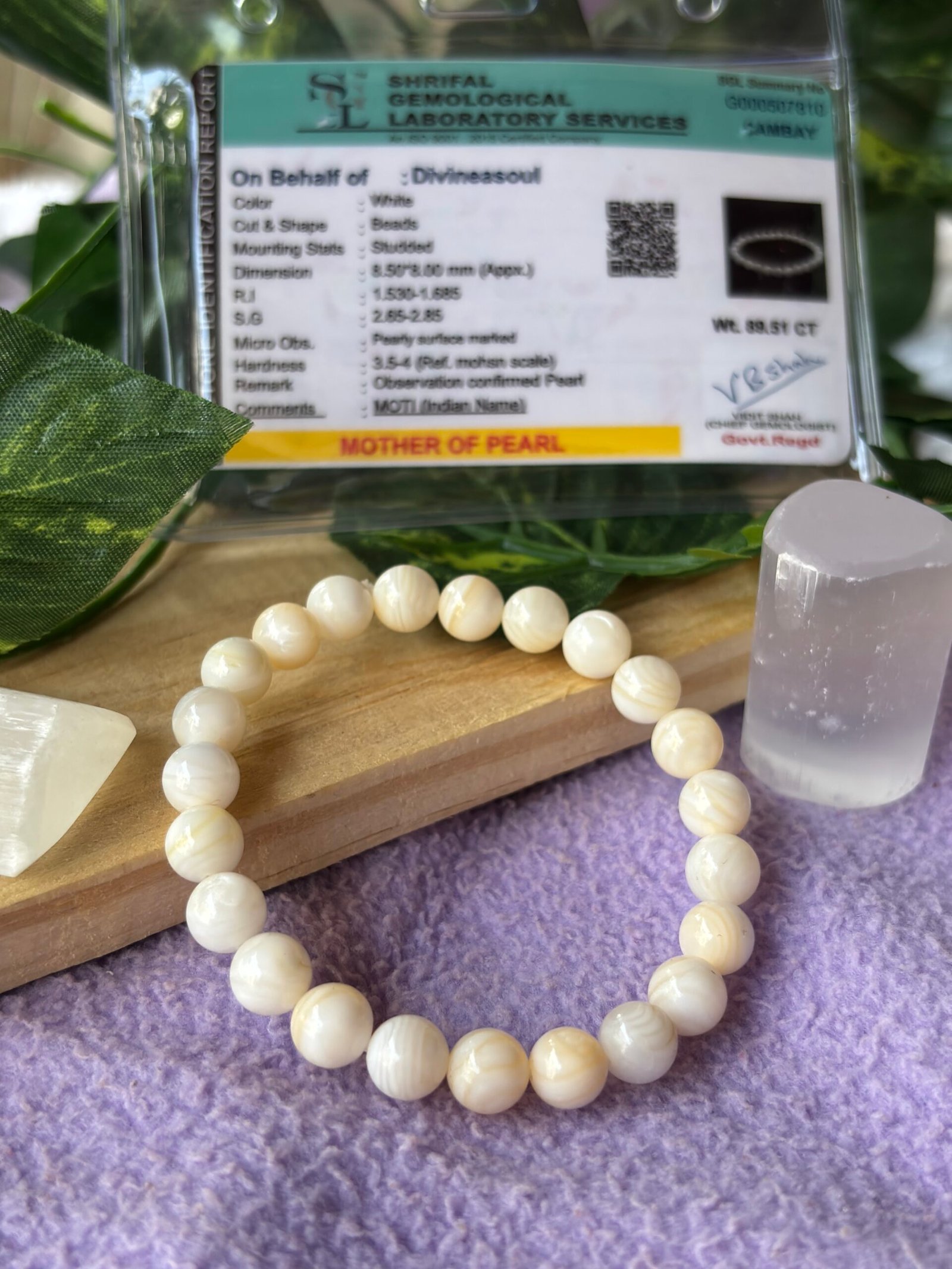The Mother Of Pearl Bracelet is a stunning piece crafted from natural nacre, found on the inner shell layer of oysters. Known for its soothing iridescent shine, this bracelet symbolizes purity, emotional balance, and inner peace.